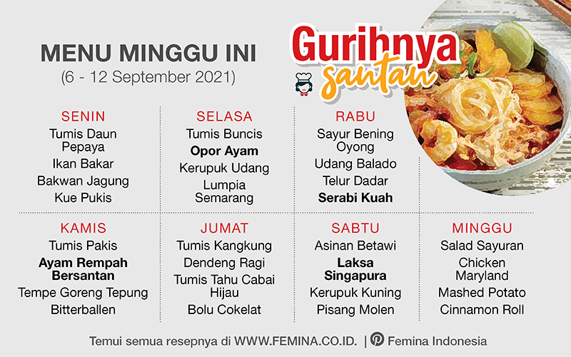 Daftar Menu Mingguan 6 12 September 2021 Gurihnya Santan
